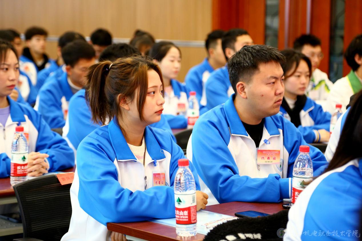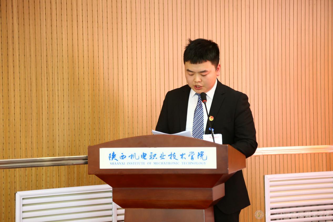 杨鹏代表共青团陕西机电职业技术学院第一届委员会向大会作了题为《不负青春使命、践行责任担当、凝聚力量、团结拼搏,用青春与智慧谱写学校建设发展的崭新篇章》的工作报告。他在报告中对我校第一次团代会以来的工作和取得的成就进行了回顾总结,分析了我校共青团当前面临的形势和存在的问题,并明确提出了今后工作的总体思路和目标。校学生会主席团执行主席巫开亮同学代表陕西机电职业技术学院第一届学生会作了题为《不忘初心勇担责任、牢记使命砥砺前行》的工作报告。报告总结了学生会一年来开展的主要工作,指出学生会工作要紧紧围绕和服务青年学生,充分肯定了学生会全心全意为同学服务的功能。