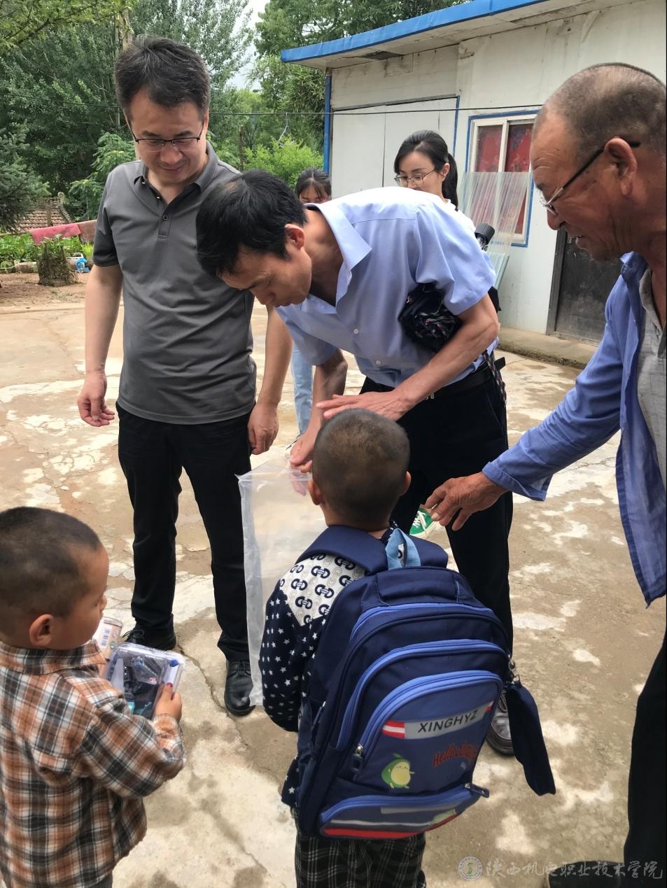 学校为九成宫镇澄铭窑村贫困儿童代表捐赠学习用品。