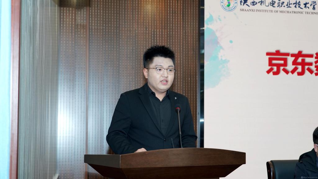 宝鸡市数字经济局副局长任海成在致辞中表示京东集团深入结合区域经济特色,与陕西机电职业技术学院在助力本地经济,人才培养层面作出了显著成果,今后将继续加深政校企合作。