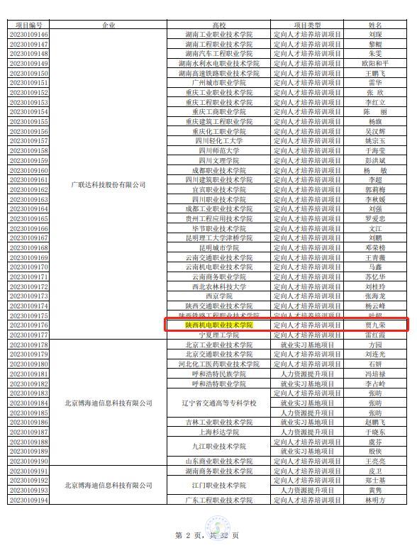 4月6日,教育部高校学生司印发了《关于公布第二期供需对接就业育人项目立项名单的通知》(教学司函〔2023〕6号)。其中,我校与浙江吉利控股集团有限公司、杭州海康威视数字技术股份有限公司、广联达科技股份有限公司等3家企业的定向人才培养培训项目获批。这是我校首次参加并获批教育部供需对接就业育人项目,也是我校高度重视产教融合、校企合作的重要成果。