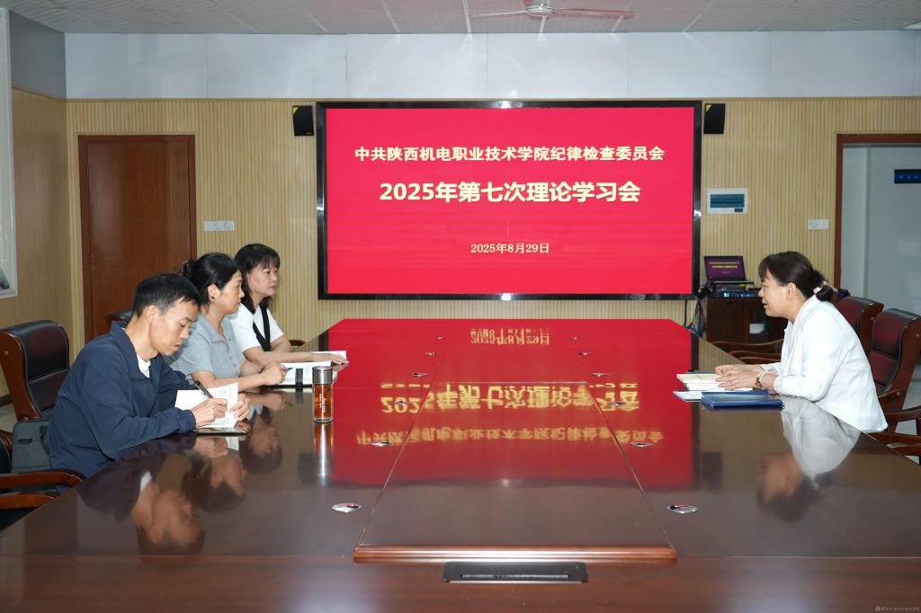 8月29日上午,学校纪委在蟠龙校区图书楼二楼会议室召开2025年度第七次理论学习会。党委副书记、纪委书记陈红梅主持会议并讲话,纪委委员、纪律检查室工作人员参加。